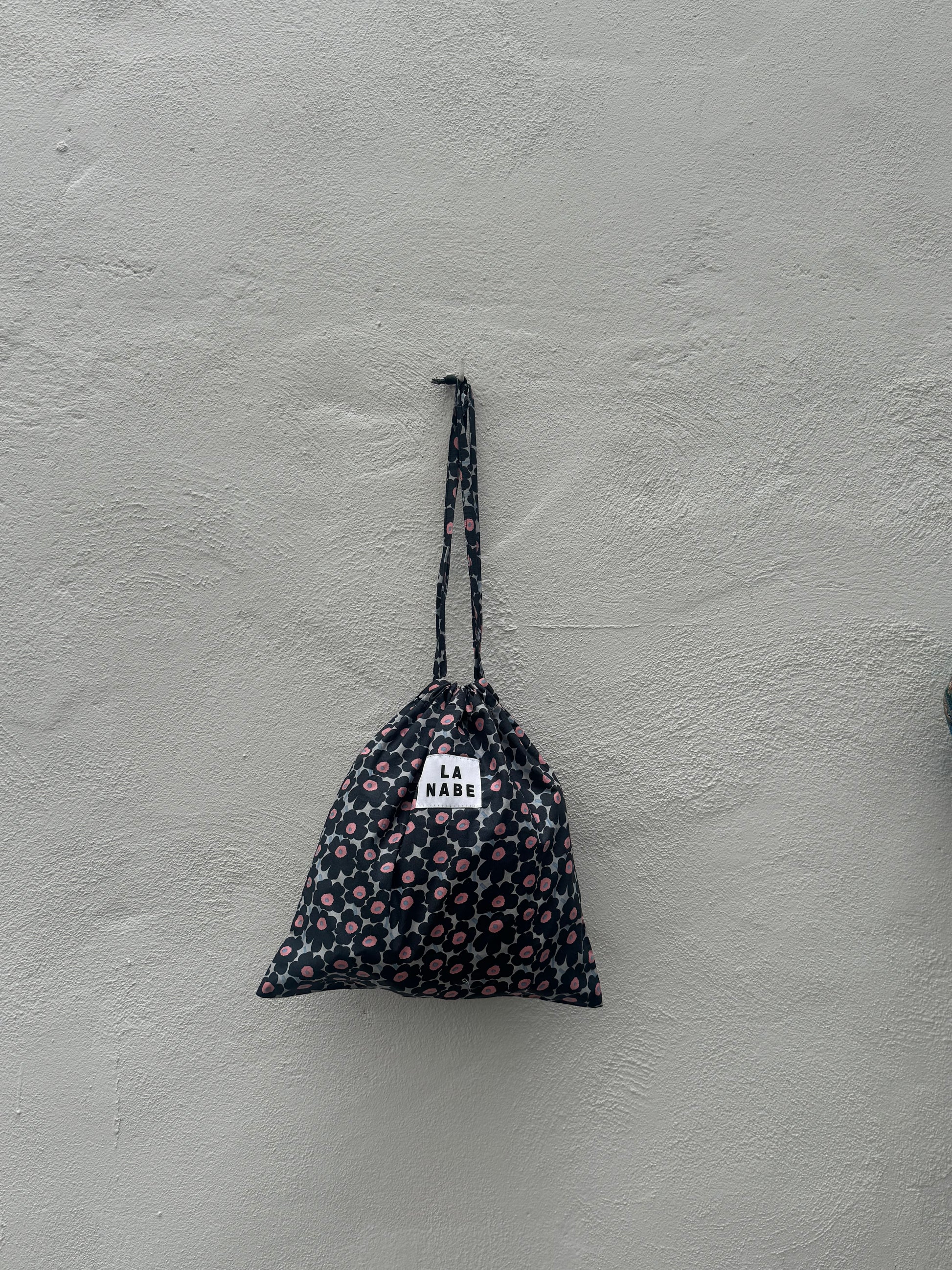 Bolsa Tela Guardapolvo Fondo Gris Flores Negras
