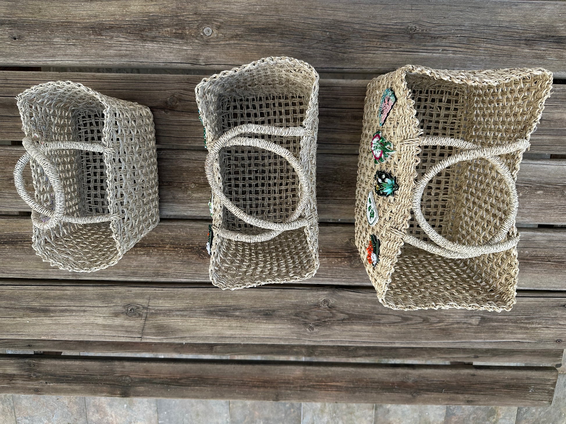 Sofisticado y lleno de encanto, este bolso cubo elaborado en yute trenzado beige se distingue por su diseño artesanal y su personalidad única. Las frutas en pedrería le dan un aire alegre y refinado, convirtiéndolo en el accesorio ideal para elevar cualquier look.