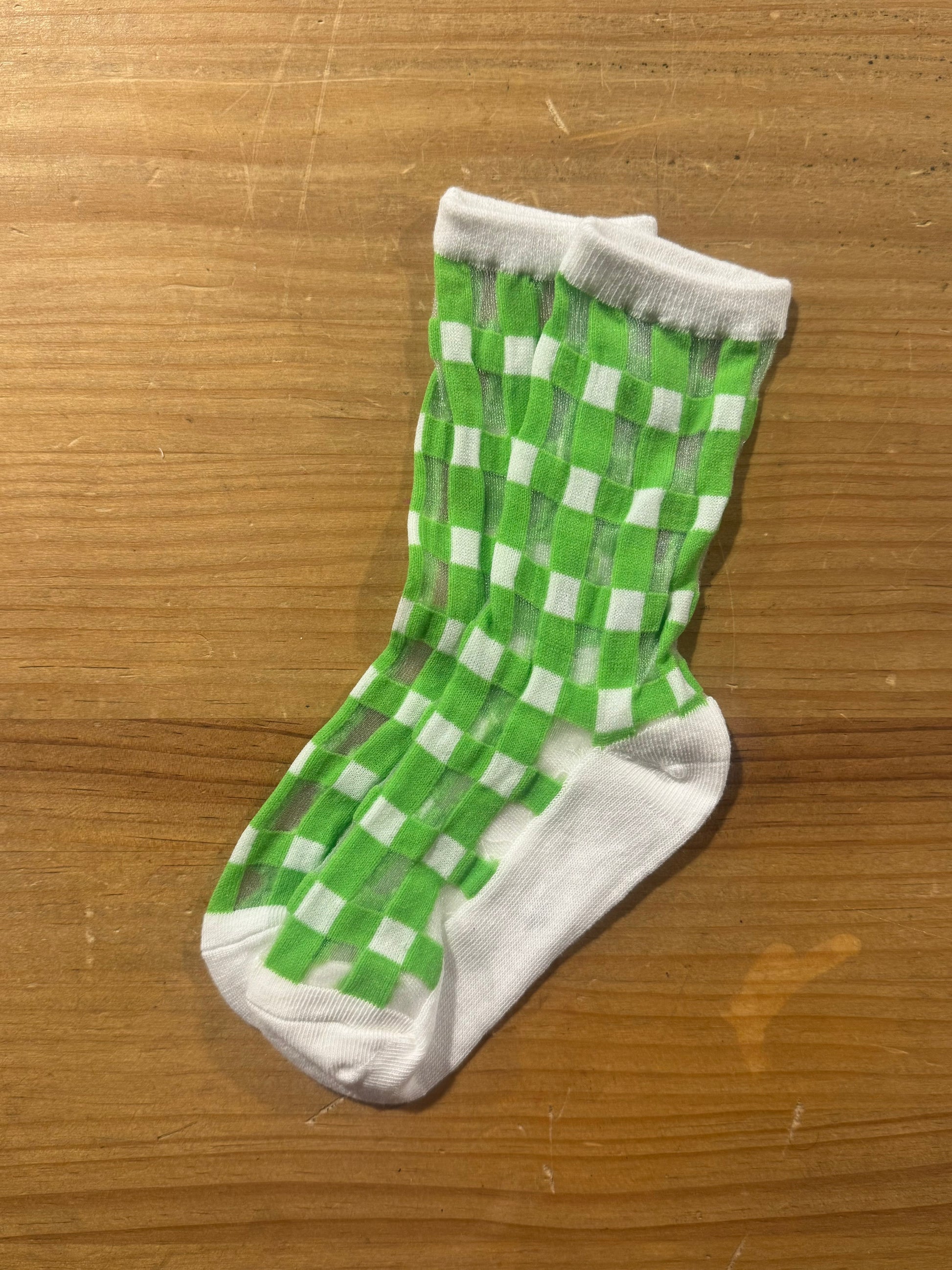 Calcetín Media Transparente Infantil Cuadros Blanco y Verde
