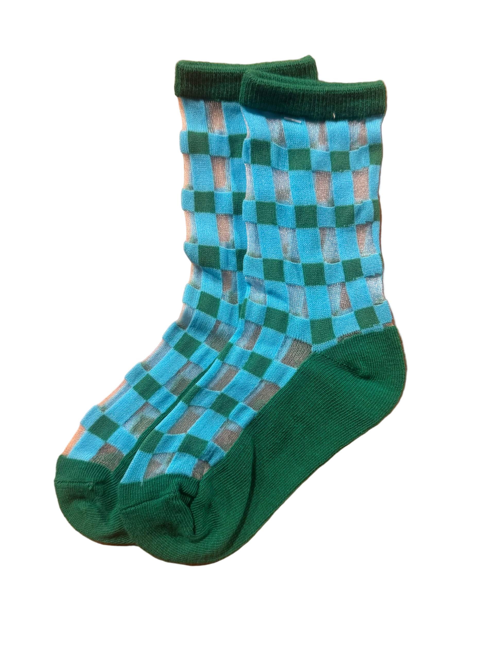 Calcetín Media Transparente Infantil Cuadros Verde y Turquesa