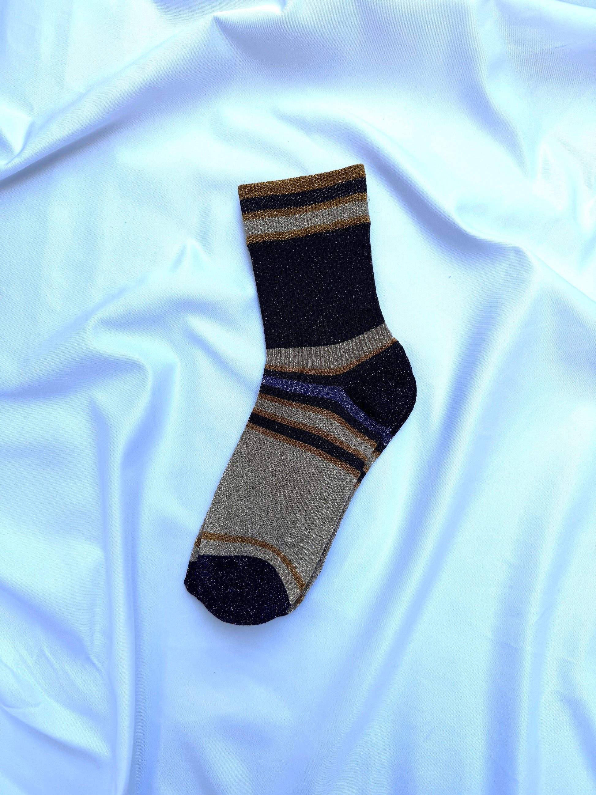 Estos calcetines de purpurina beige son la mezcla perfecta entre elegancia discreta y comodidad. Su tono neutro con destellos sutiles los convierte en un básico versátil con un toque especial.