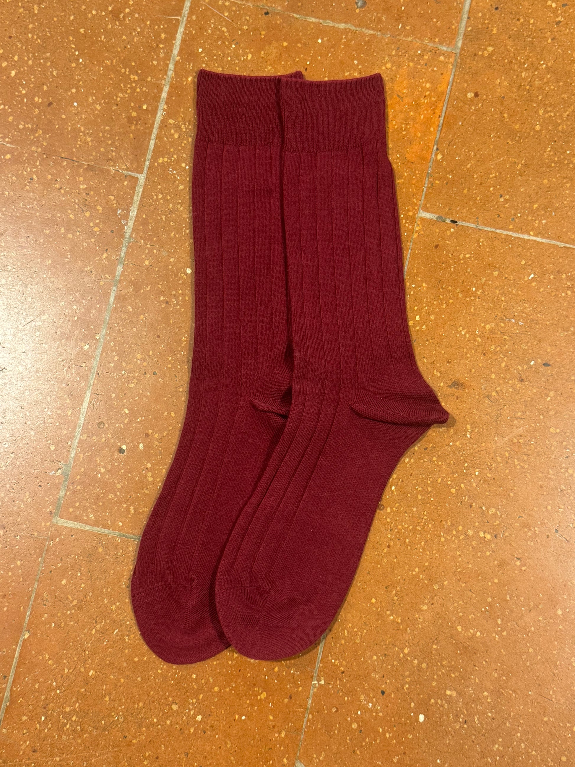 Calcetines Hombre Granate Liso Canalé Caña Alta