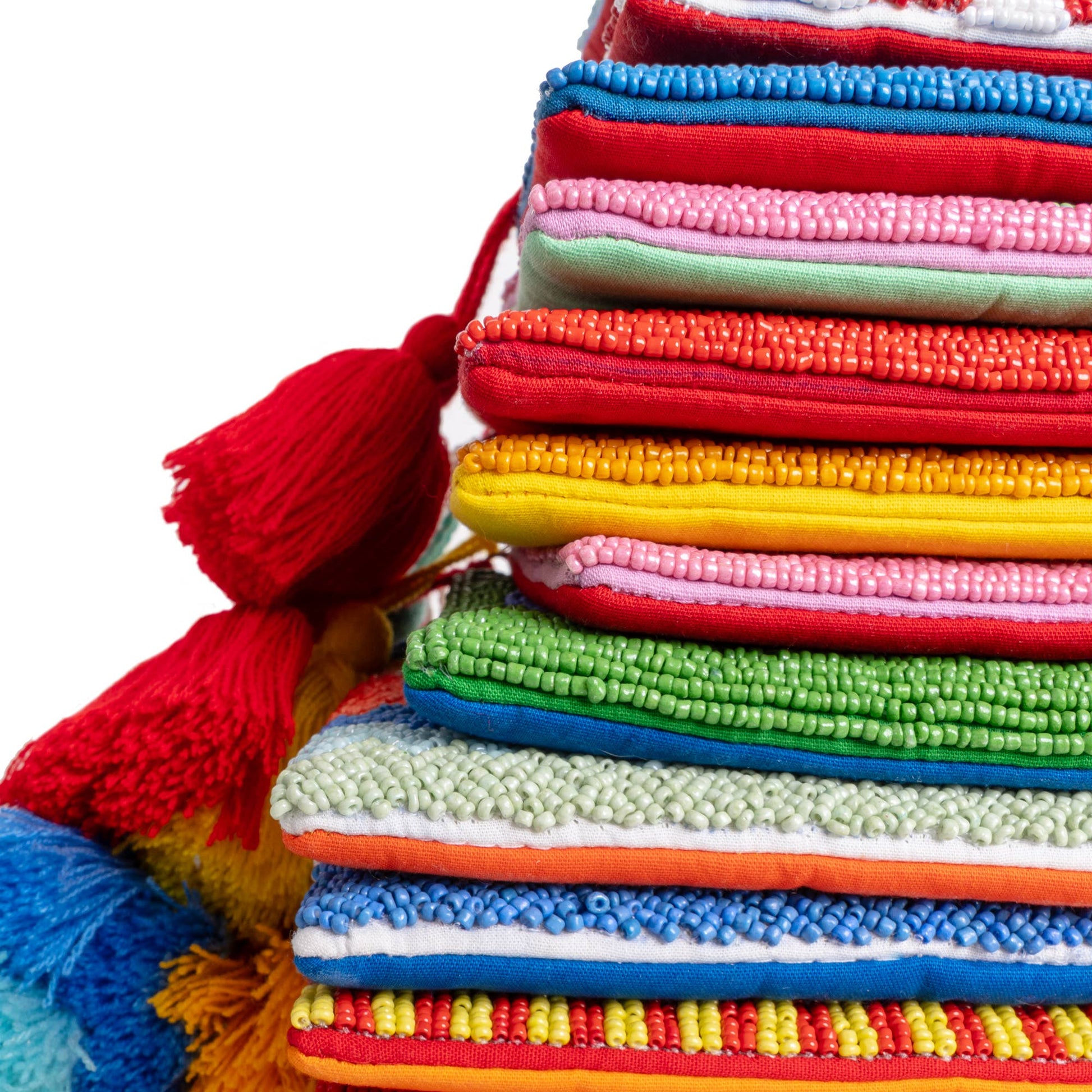 Esta cartera tipo clutch azul con cuentas bordadas y flor roja combina colores intensos y diseño artesanal para crear un accesorio lleno de vida. Su estética llamativa y cuidada la convierte en un detalle que no pasa desapercibido.