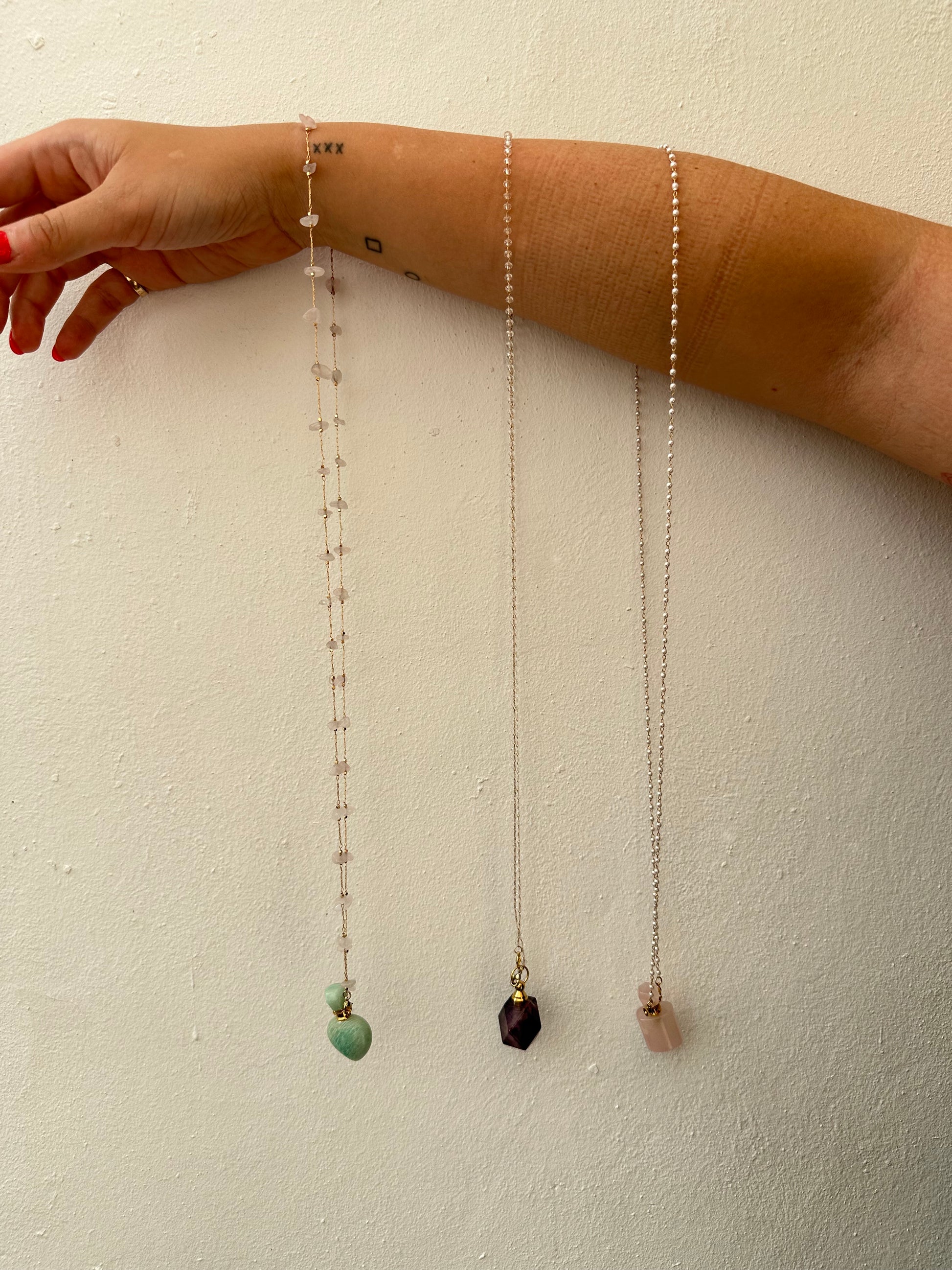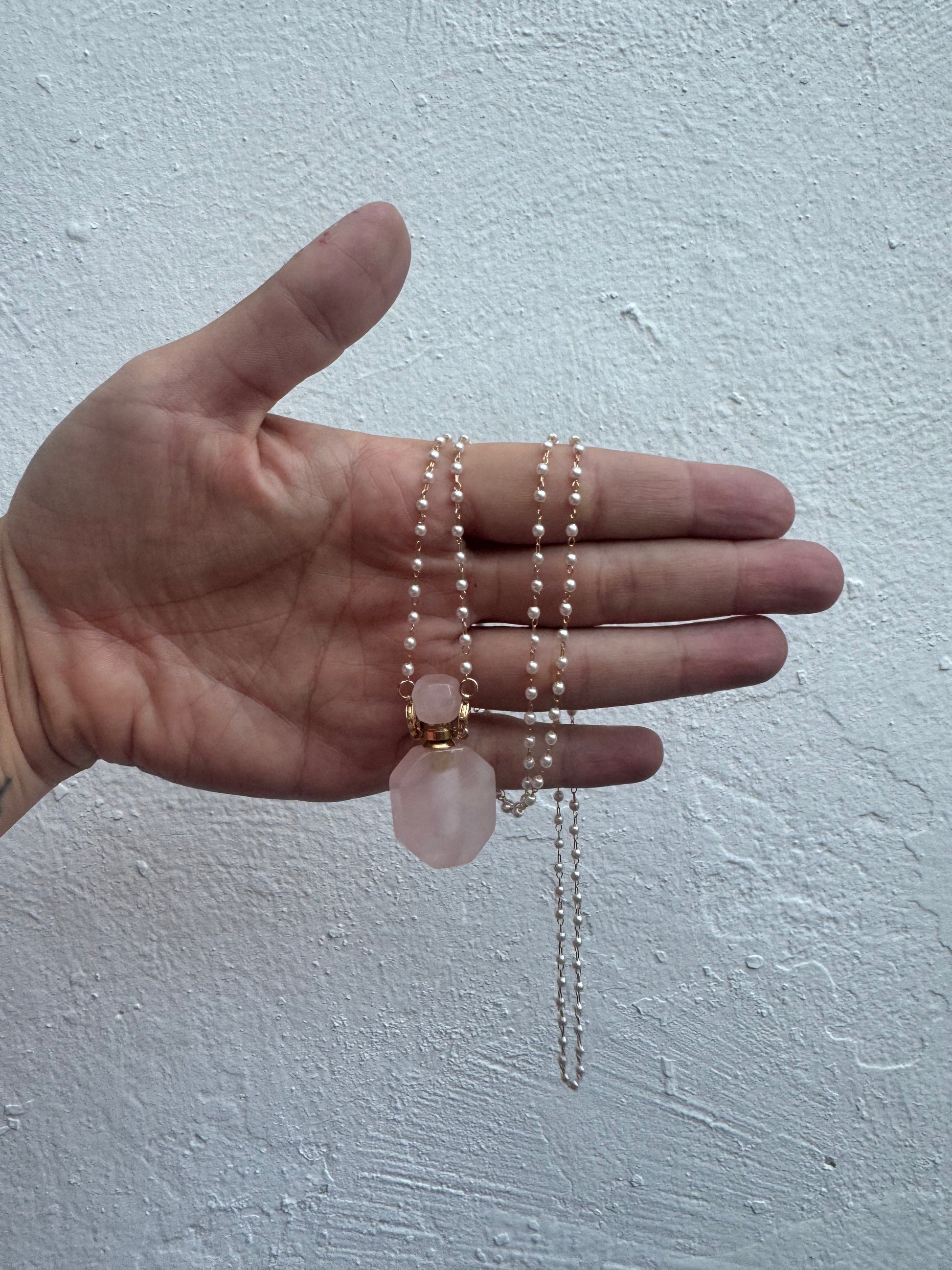 Collar Perfumero Cuarzo Rosa Cadena Perlitas