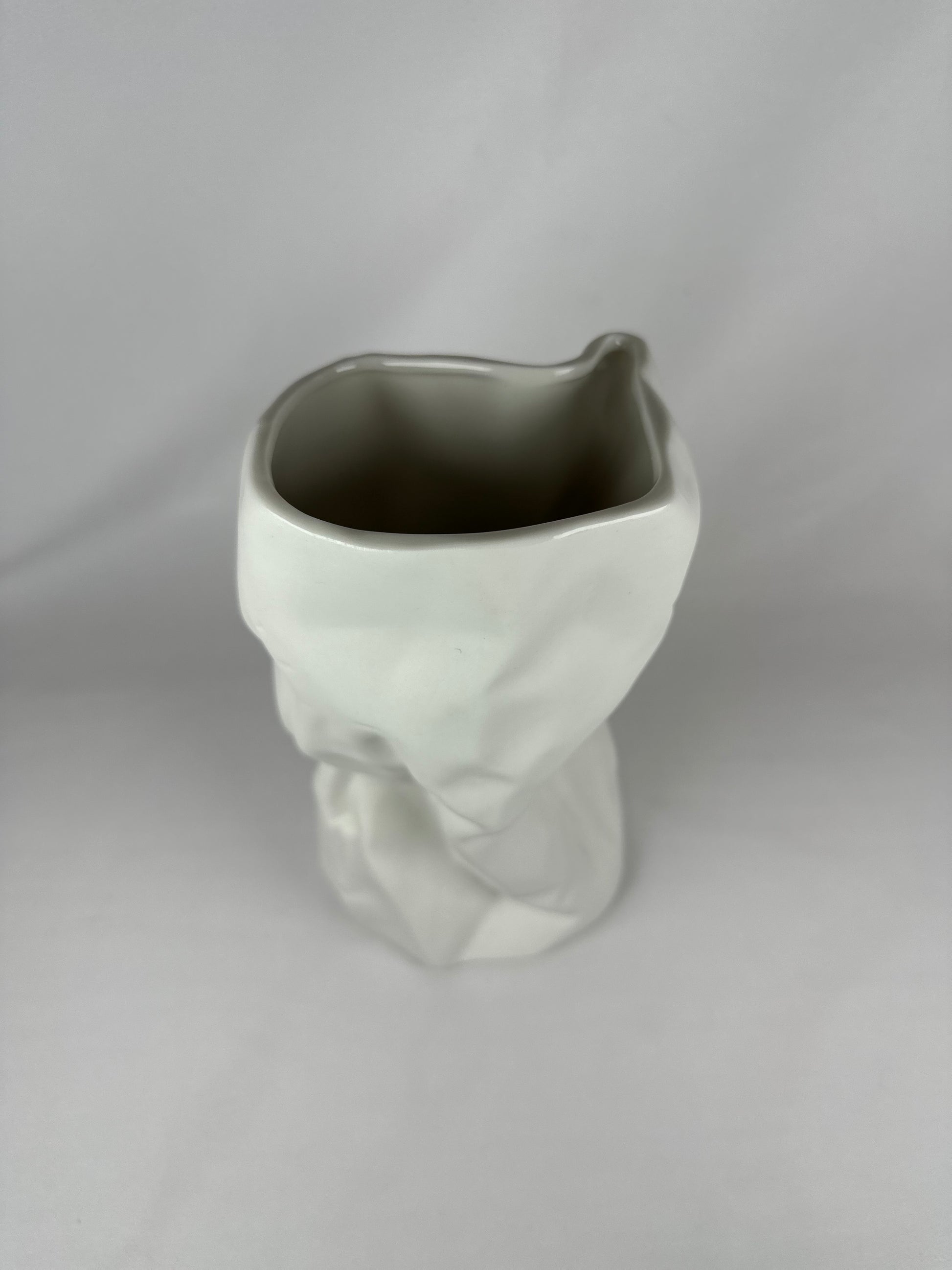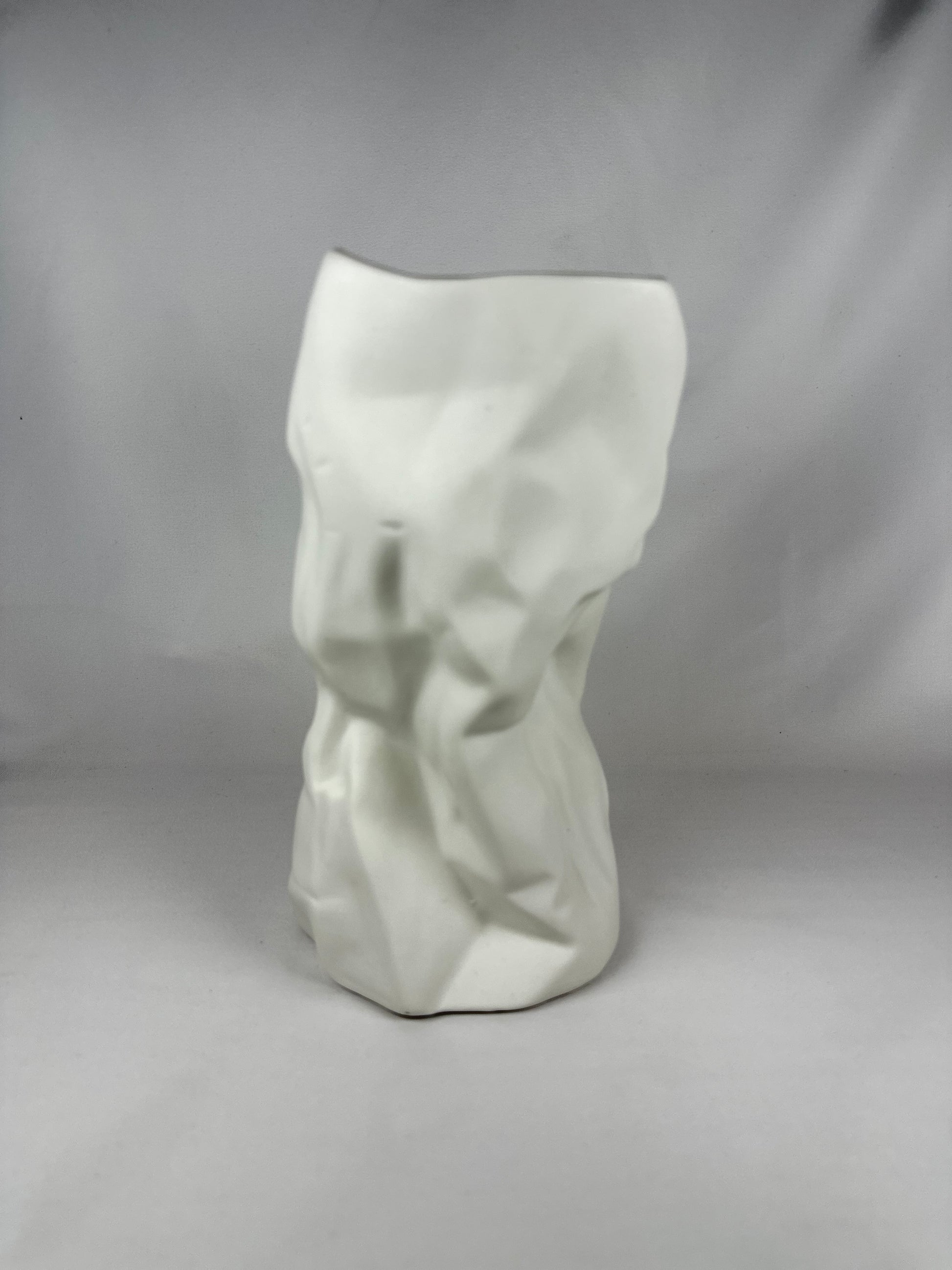 Jarrón con diseño arrugado y desigual, fabricado en material que imita el papel, aportando un toque moderno y artístico a cualquier espacio. Perfecto para flores secas, ramas decorativas o como elemento decorativo por sí mismo en salones, mesas, estanterías o recibidores.