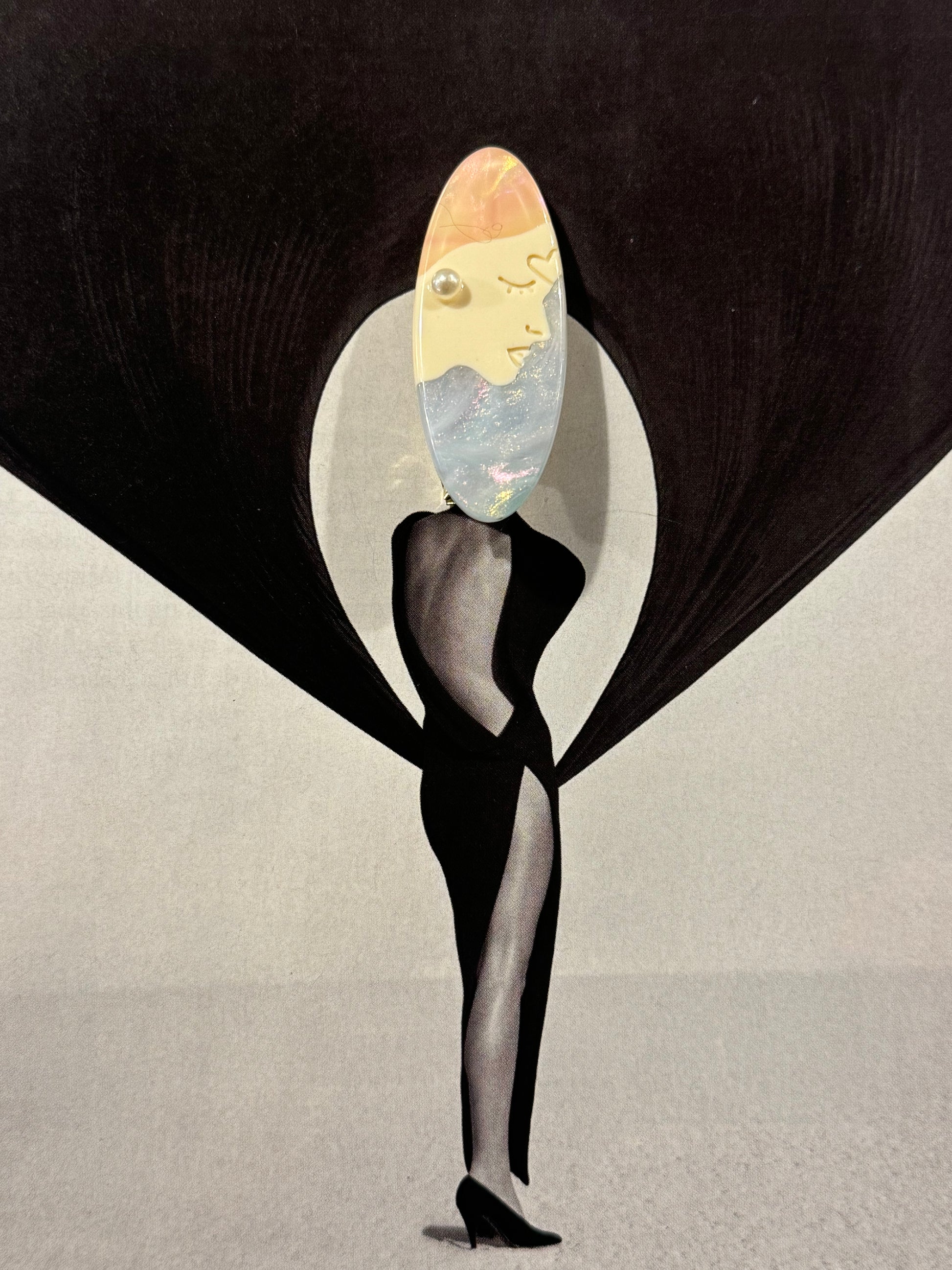 Horquilla Pasador Estilo Nacarado con Cara con Rosa y Azul