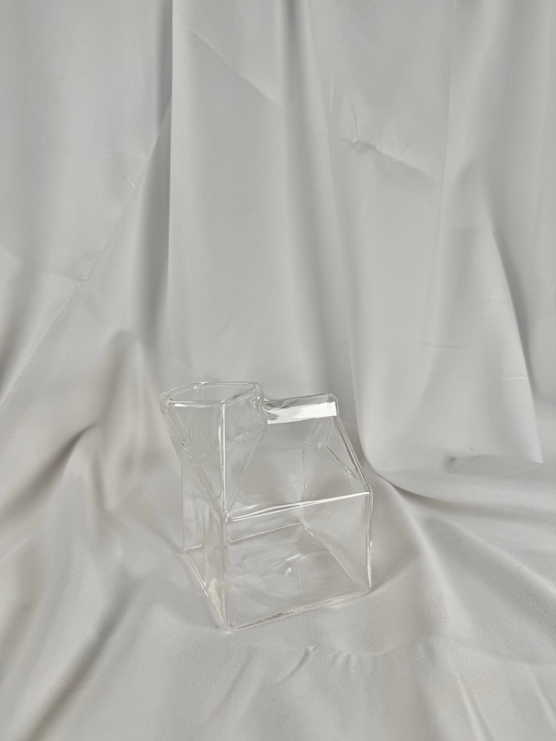 Esta jarra de leche reinterpreta el clásico brik de cartón en una versión de vidrio transparente, combinando diseño contemporáneo con un guiño divertido a los envases cotidianos. Ideal para servir leche, nata o incluso aliños, aporta un toque de originalidad y estilo minimalista a la mesa o la cocina.