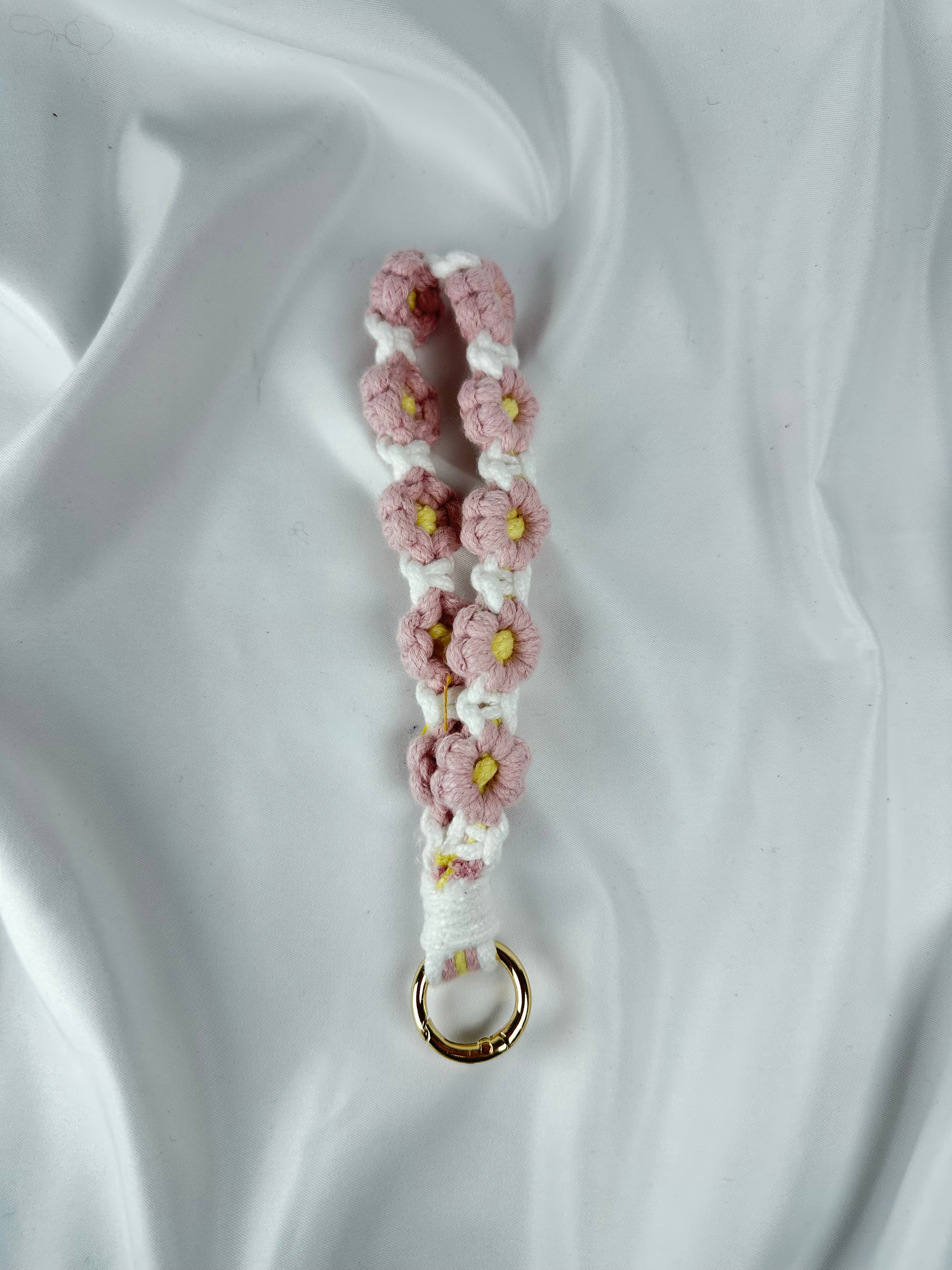 Añade un toque romántico a tus llaves con este llavero de flores de ganchillo. El contraste entre el blanco base y las flores en tonos rosa lo convierte en un detalle único, ideal para llaves. Un accesorio lleno de encanto que nunca pasa de moda. ✨