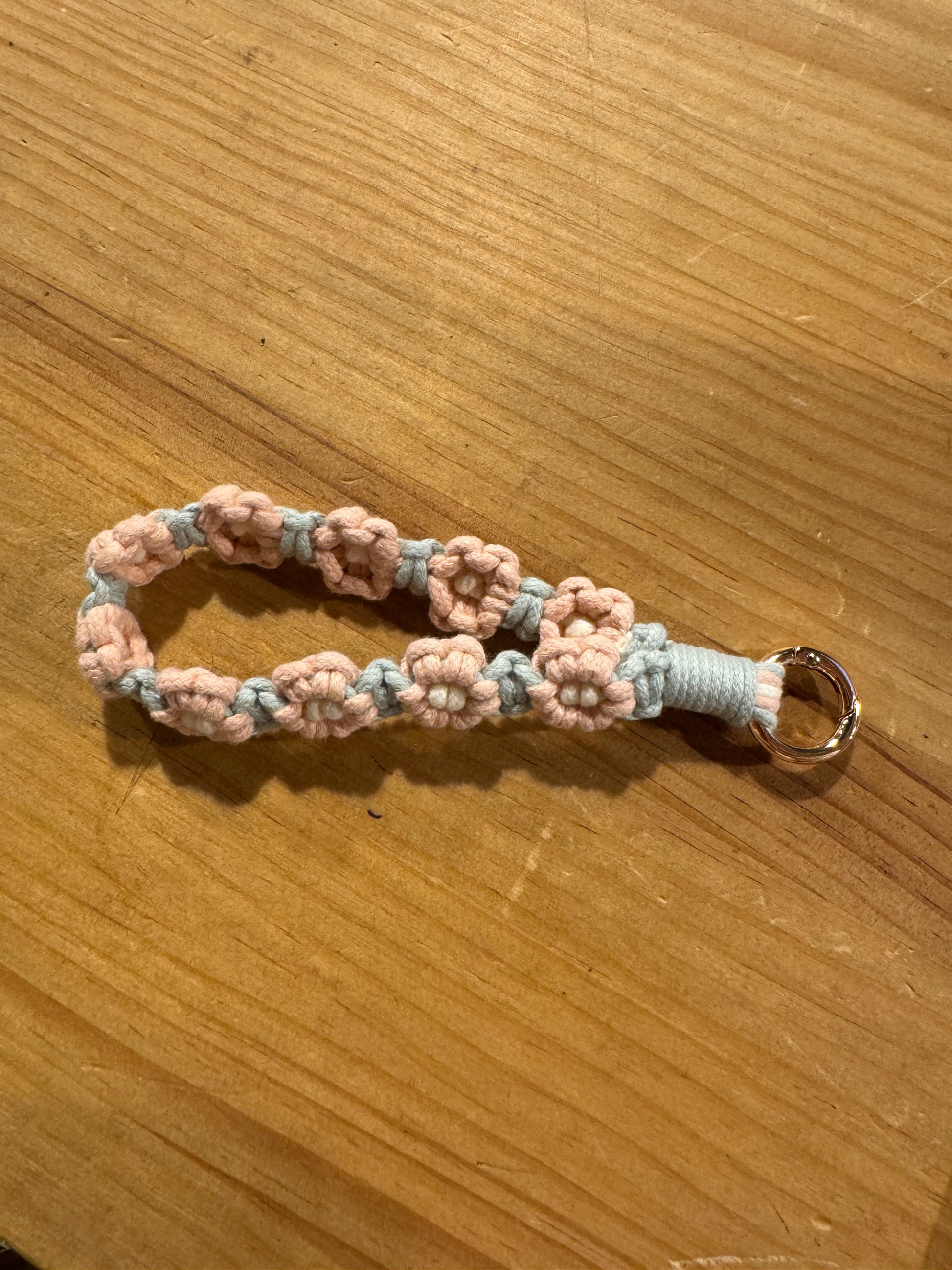 Llavero Flores Ganchillo Verde Menta Flores Rosas