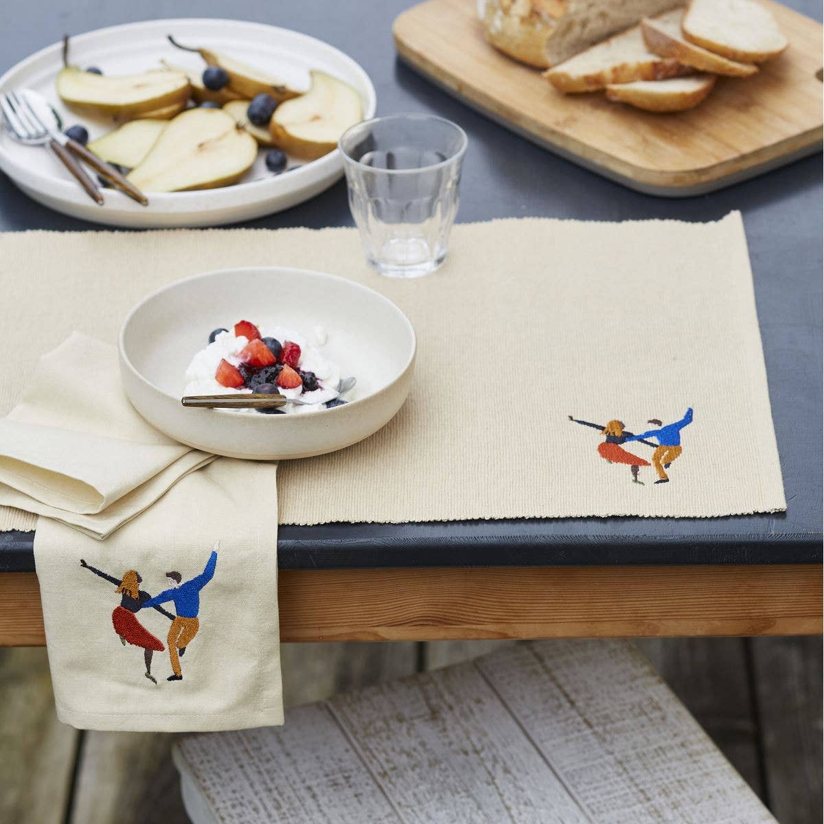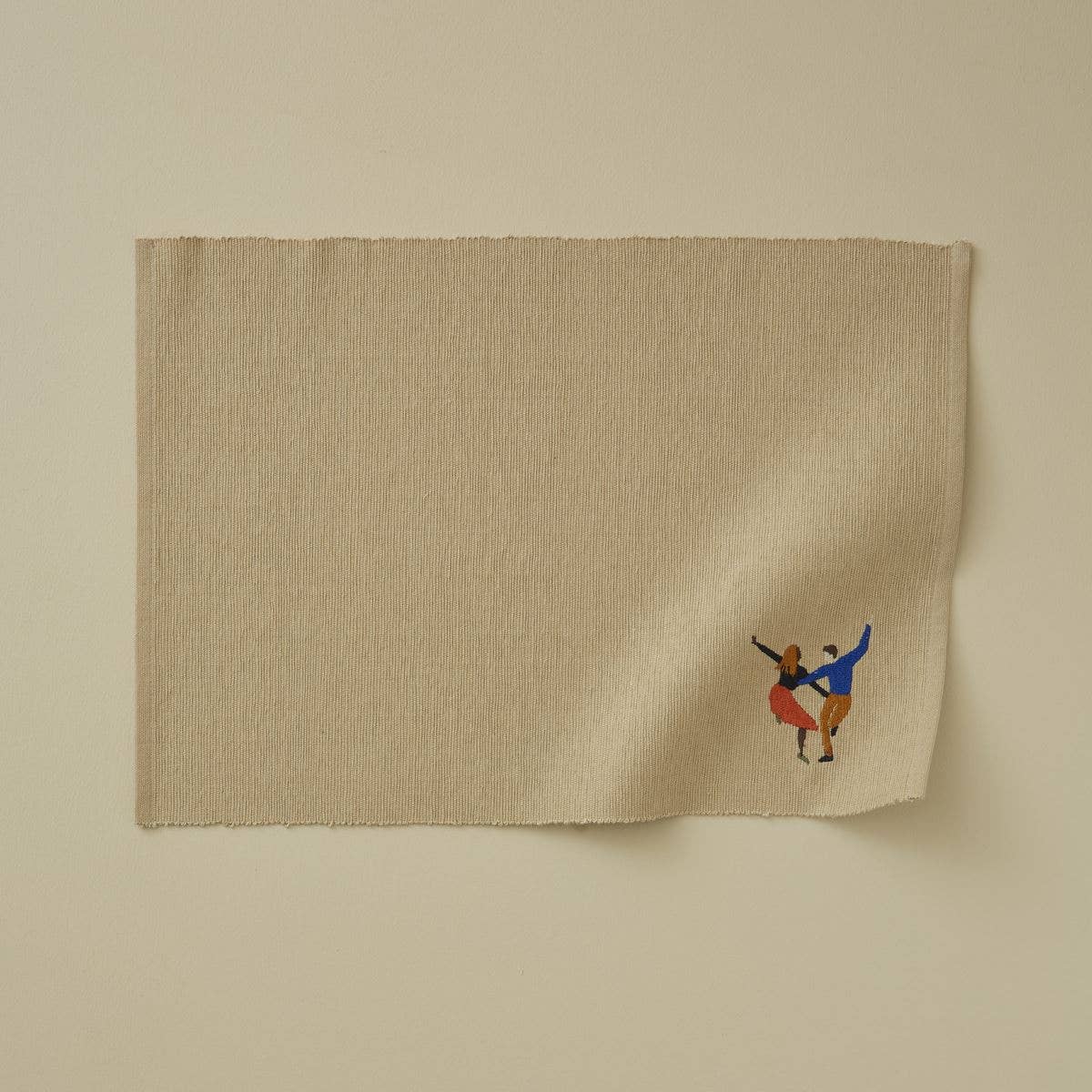 Mantel Individual Canalé Beige Bordado con Personas Pareja Bailando