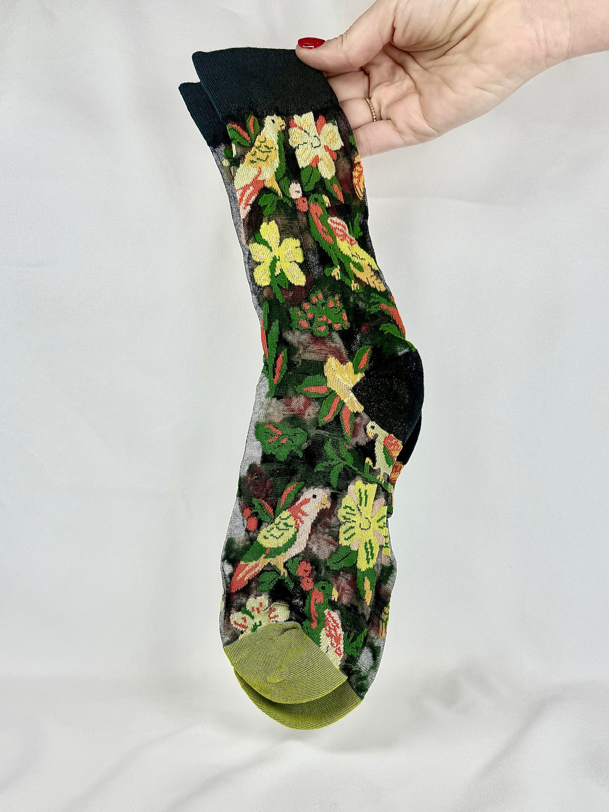 Estas medias transparentes con diseño bosque y puntera verde claro evocan un estilo natural y mágico, ideal para quienes aman los detalles inspirados en la naturaleza. Su tejido ligero y suave se adapta cómodamente, mientras los motivos botánicos y la puntera de color aportan un toque de frescura y originalidad. Un accesorio encantador para elevar cualquier look con un guiño fantasioso.