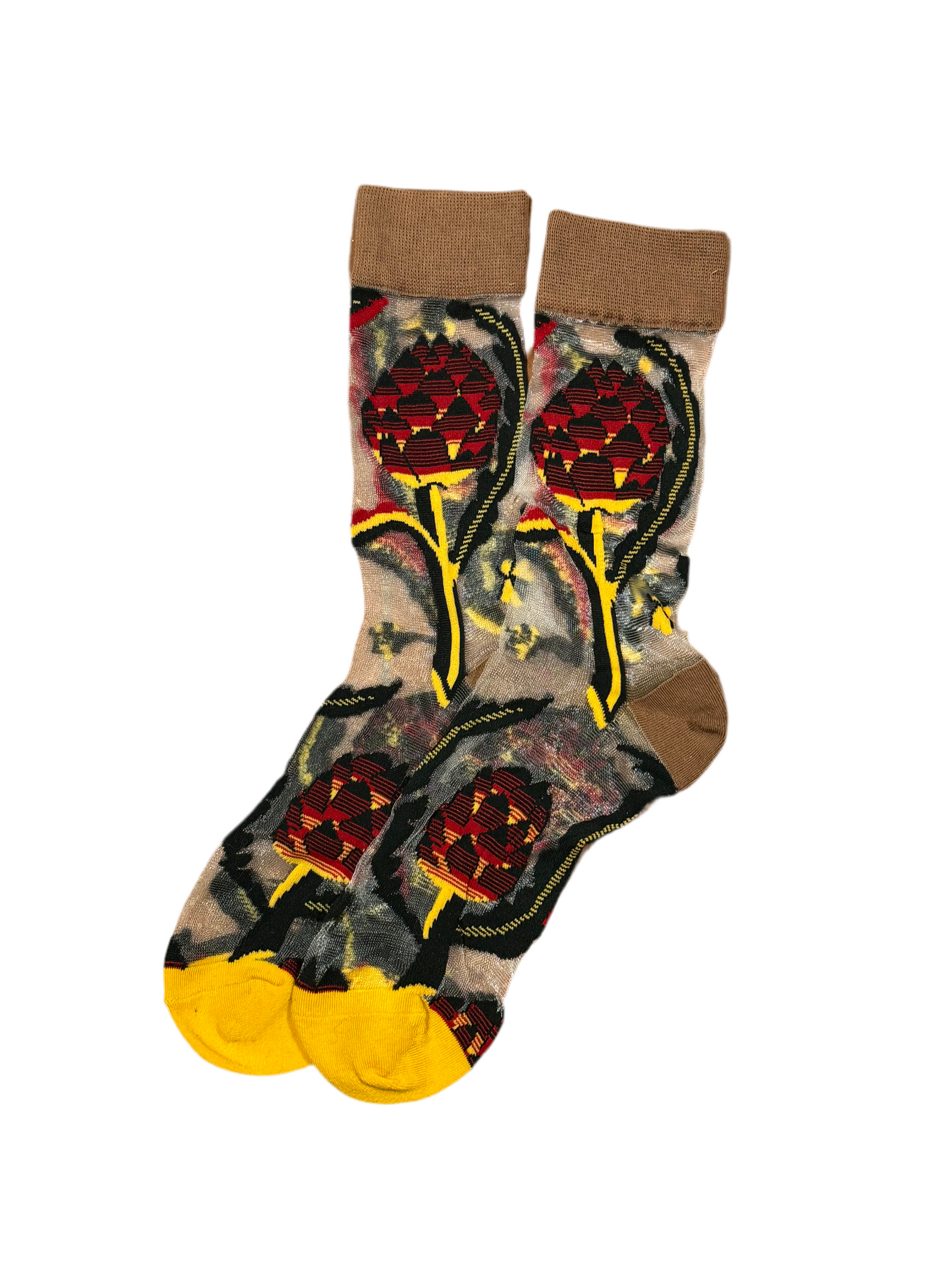 Media Transparentes Puntera Mostaza y Marrón