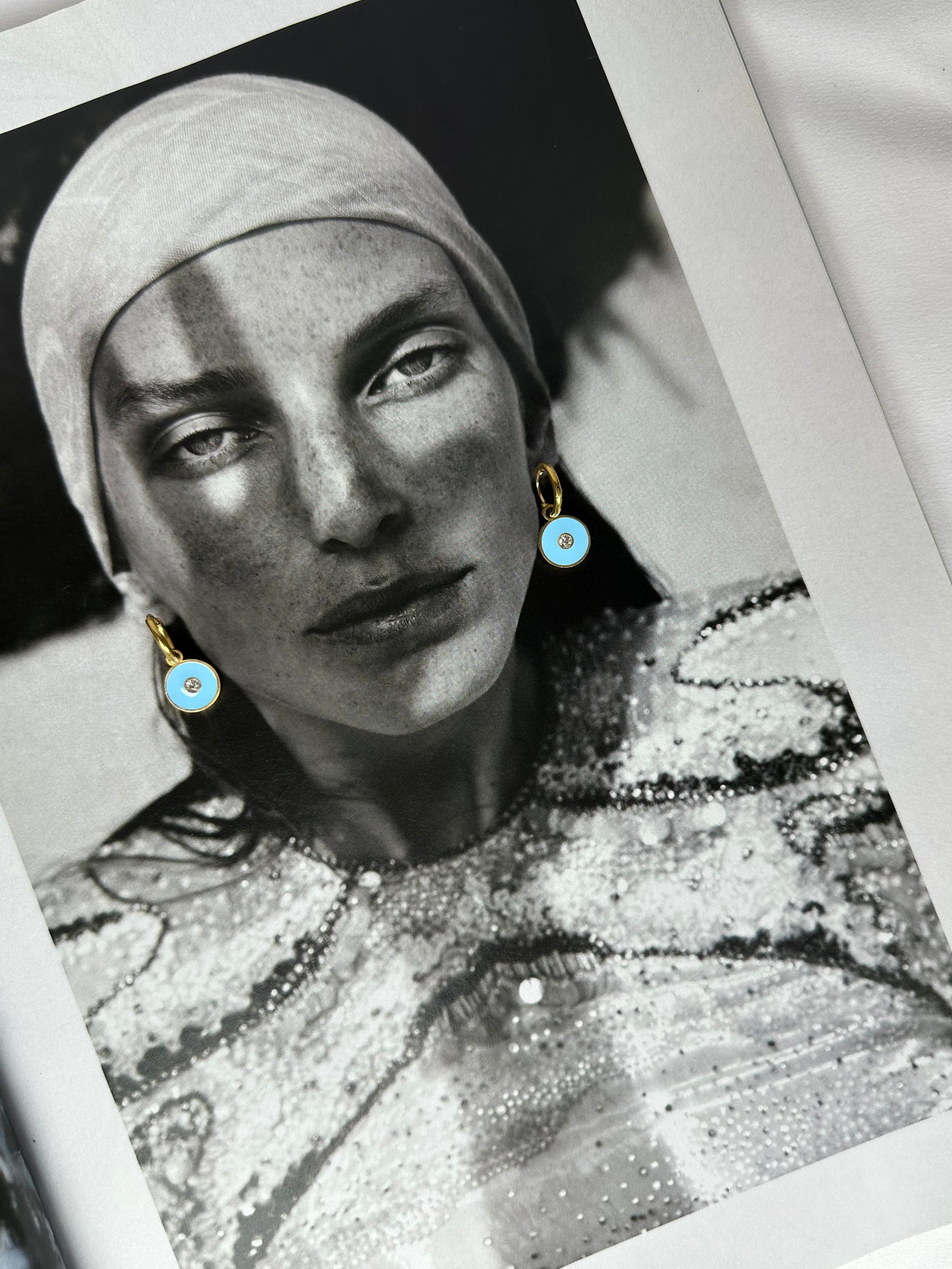 Mini pendientes con círculo azul claro y un brillante decorativo, ideales para añadir un toque suave, moderno y luminoso a cualquier look. Su tamaño discreto pero especial los hace perfectos para el día a día o para combinarlos con otros pendientes y crear un estilo más personal.