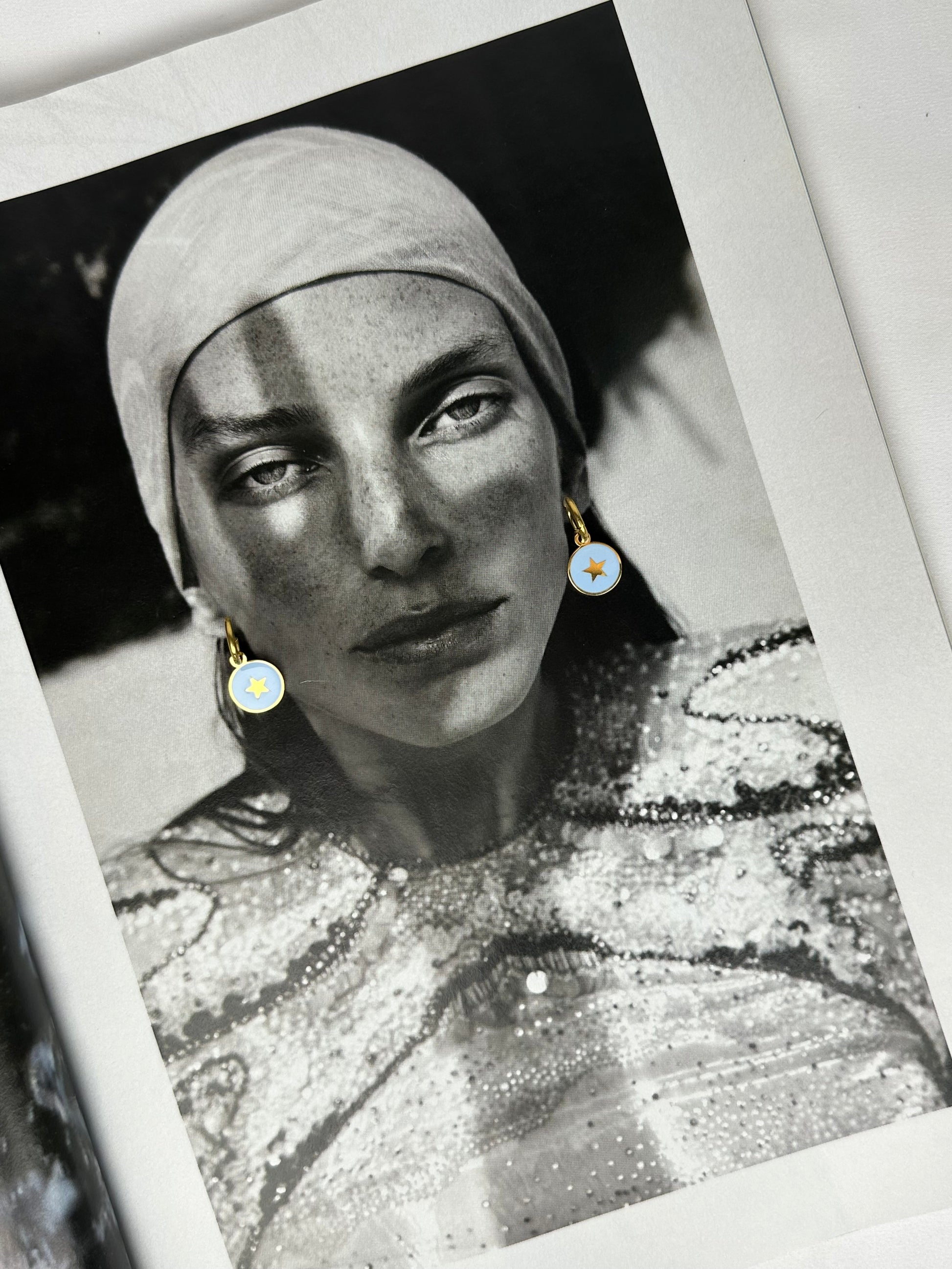Mini pendientes con círculo azul y detalle de estrella, ideales para añadir un toque delicado y actual a cualquier look. Su diseño pequeño pero especial los convierte en un accesorio perfecto para el día a día o para combinar con otros pendientes creando un estilo más personal.
