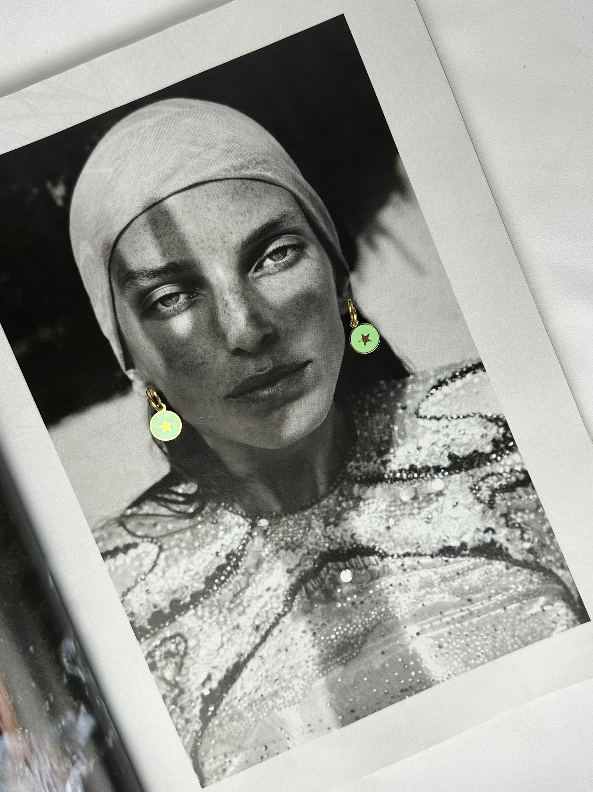 Mini pendientes con círculo verde y detalle de estrella, perfectos para añadir un toque sutil, moderno y lleno de encanto a cualquier look. Su diseño pequeño pero llamativo los convierte en un accesorio ideal para el día a día o para combinar con otros pendientes en look de oreja múltiple.