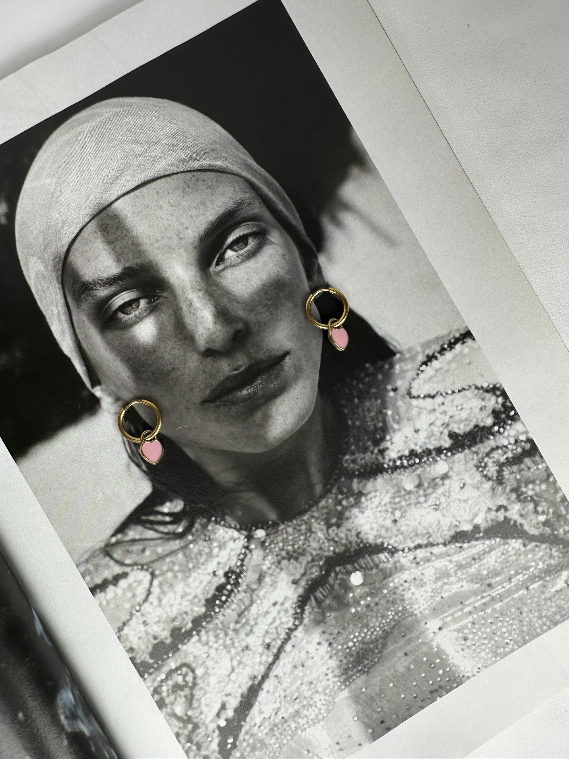 Mini pendientes con candado en forma de corazón rosa, ideales para añadir un toque romántico y actual a cualquier look. Su diseño pequeño pero muy expresivo los convierte en un accesorio perfecto para el día a día o para combinar con otros pendientes creando un estilo más personal.