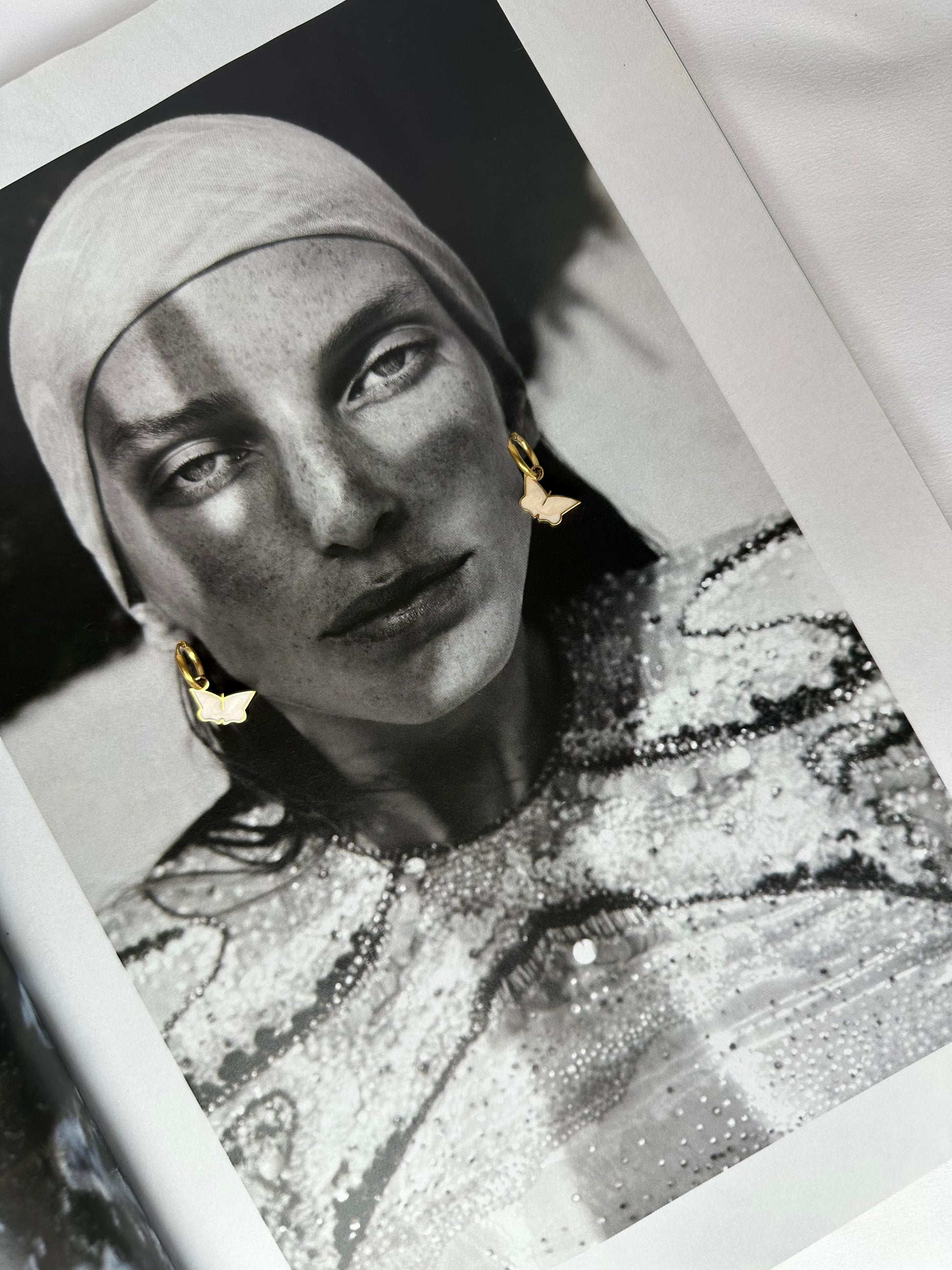 Mini pendientes con mariposa blanca nacarada, perfectos para añadir un toque suave, romántico y brillante a cualquier look. Su acabado nacarado aporta una luz preciosa que los hace ideales para el día a día o para combinarlos con otros pendientes en estilos más elaborados.