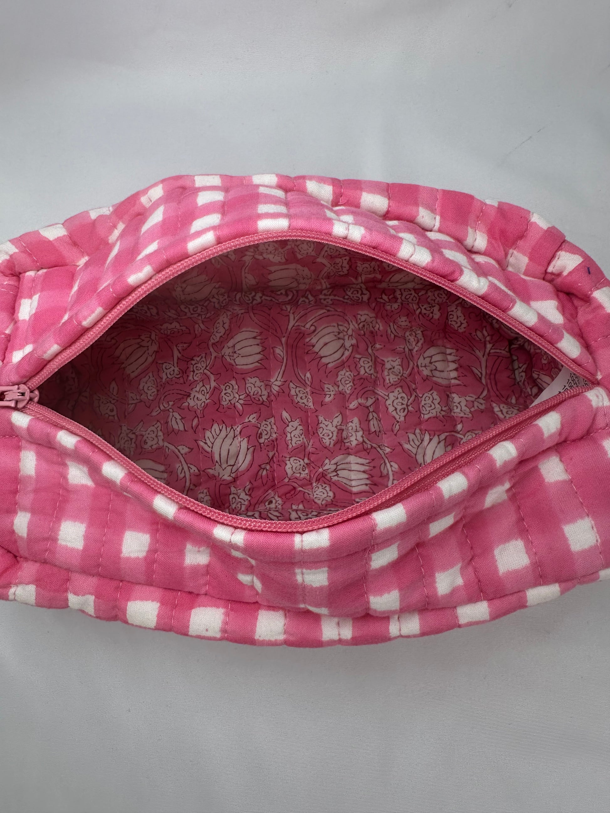 Neceser Cuadros Vichy Rosa Fucsia y Blanco Pequeño