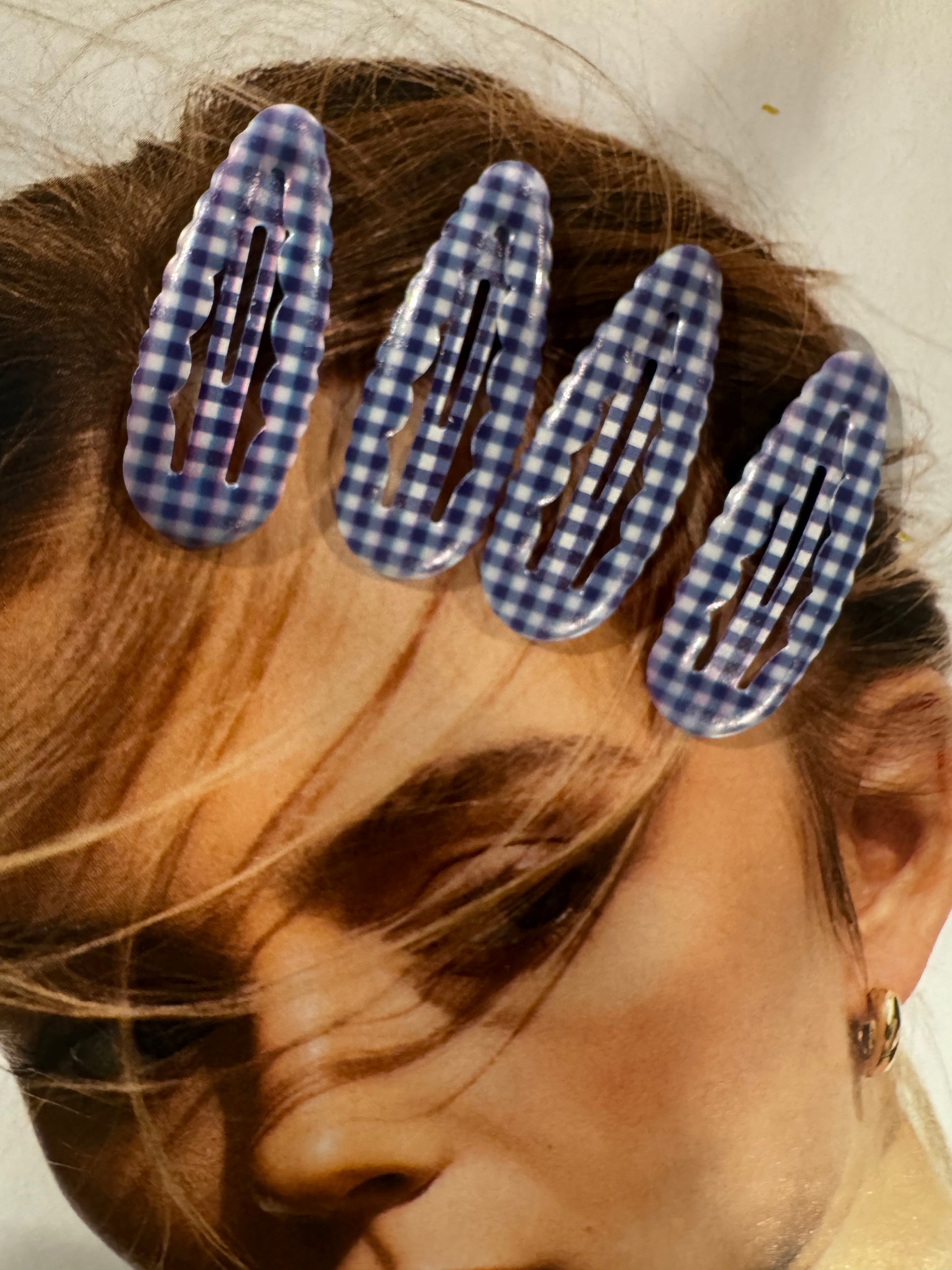 Pack 4 Horquillas Vichy Azul y Blanco