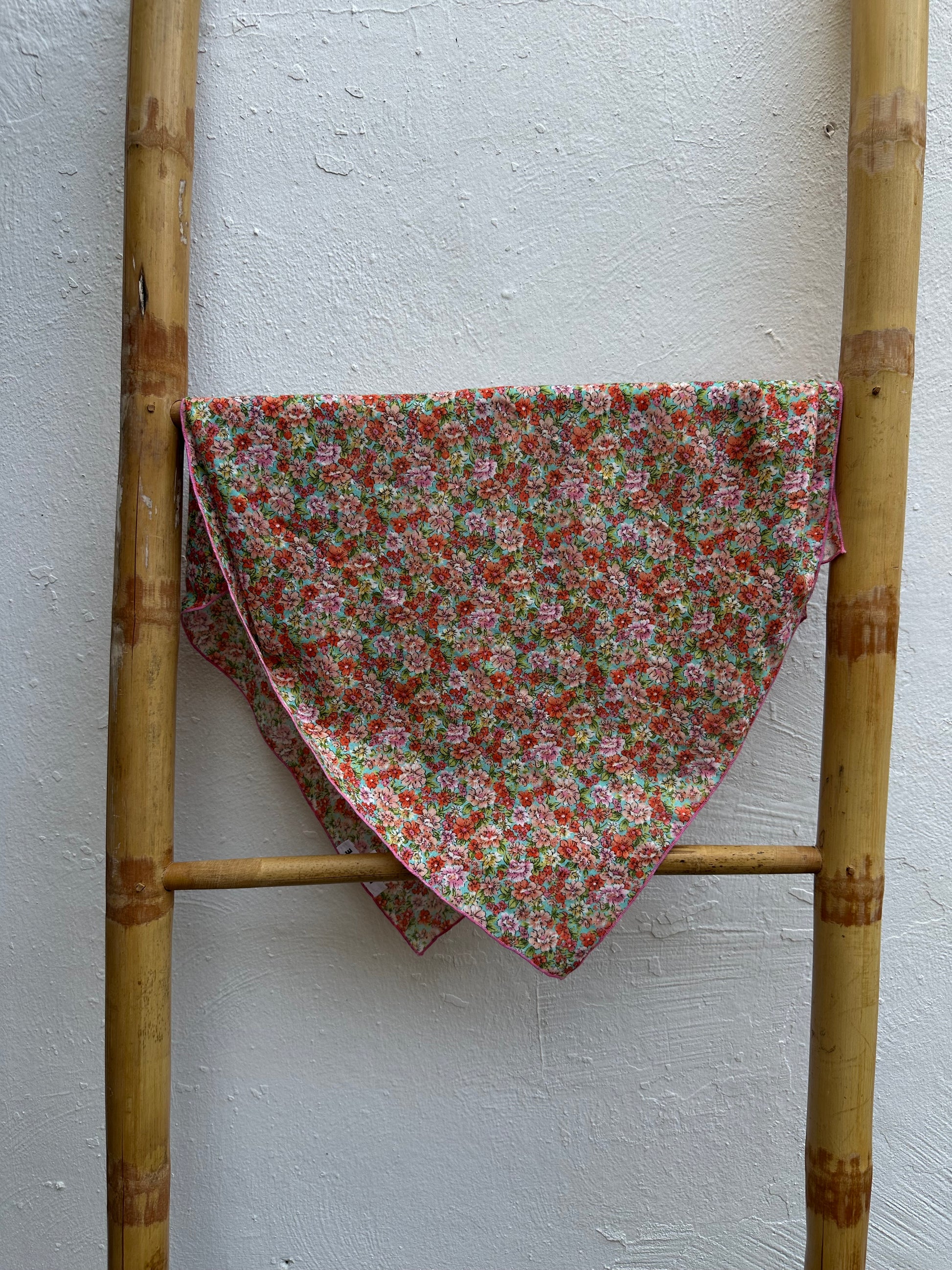 Pañuelo Algodón Flores tipo Liberty Naranja Rosa Azul Borde Rosa