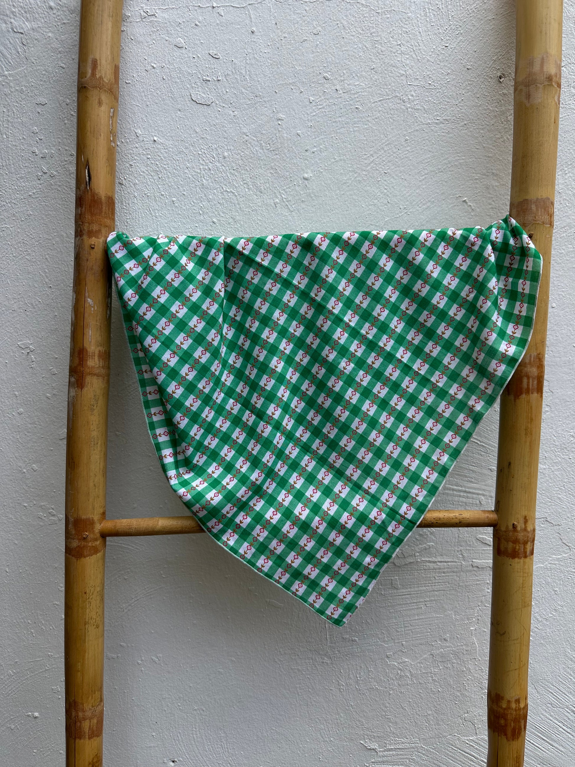 Este pañuelo con estampado vichy verde se combina con un delicado diseño de flores rojas, aportando un toque campestre, romántico y lleno de vida a cualquier look. Su tejido ligero y suave lo convierte en un complemento versátil y cómodo, ideal para llevar al cuello, en el pelo o como detalle en el bolso. Una pieza perfecta para quienes buscan un accesorio femenino, original y con mucho estilo.