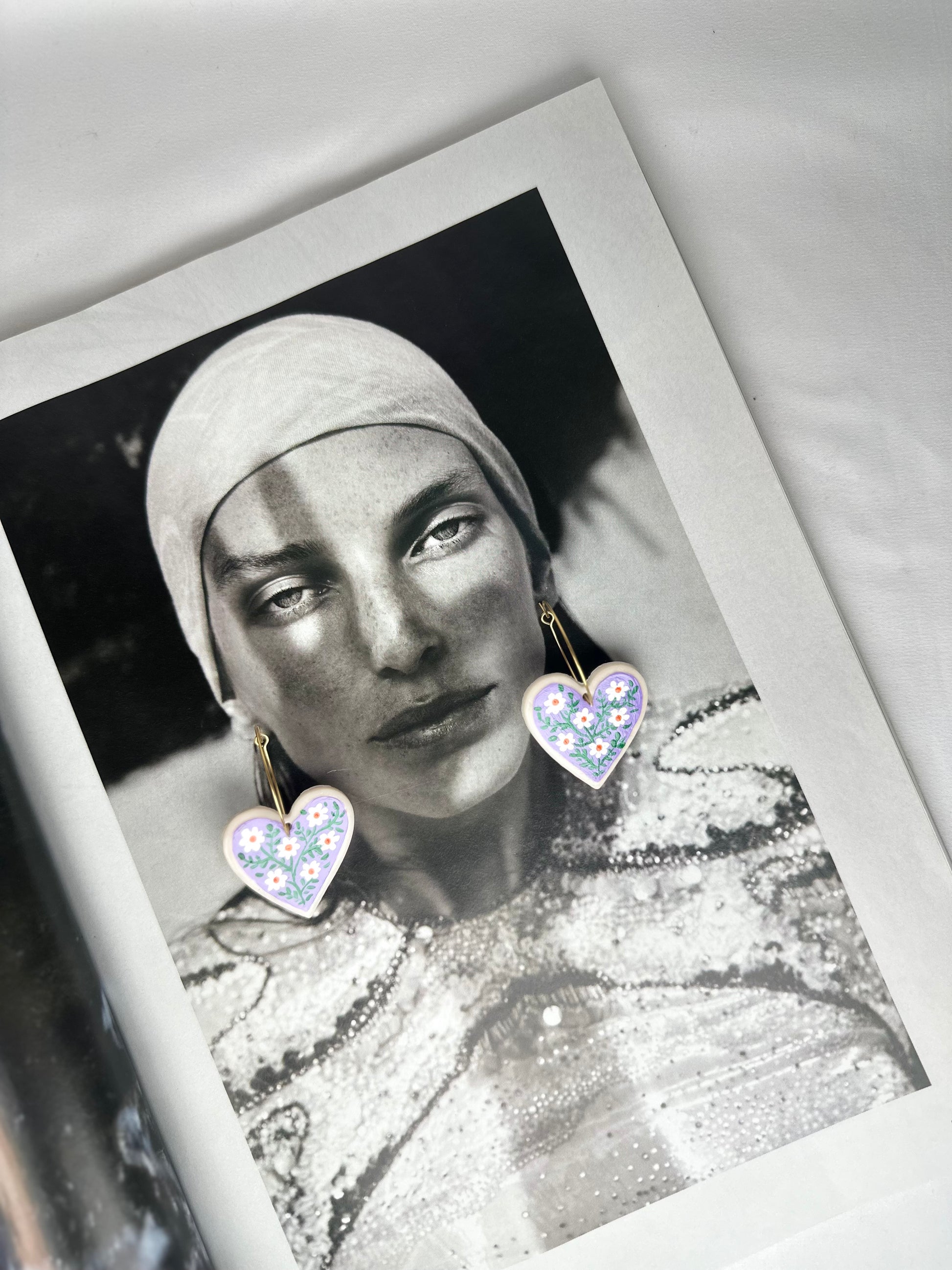 Pendiente Aro Dorado con Corazón Rosa y Flor Azul en arcilla polimérica, un accesorio delicado que aporta color y estilo a cualquier look. Perfecto para regalar o lucir con orgullo, ideal para ocasiones cotidianas o especiales.