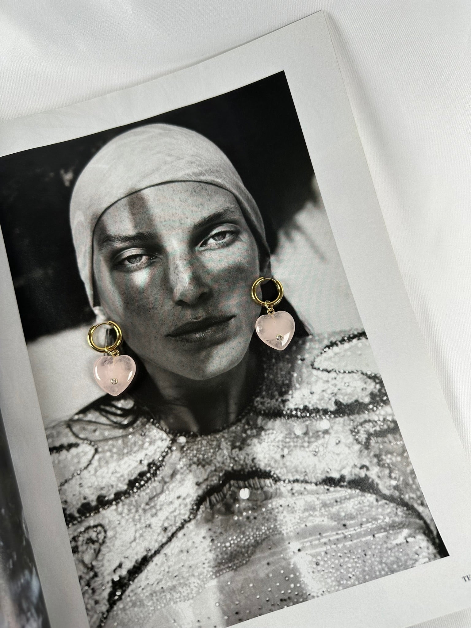 Pendientes con corazón de cuarzo rosa y un pequeño brillante decorativo, perfectos para añadir un toque delicado y luminoso a cualquier look. Su combinación de tonos suaves y acabado brillante los convierte en un accesorio ideal tanto para el día a día como para ocasiones especiales.