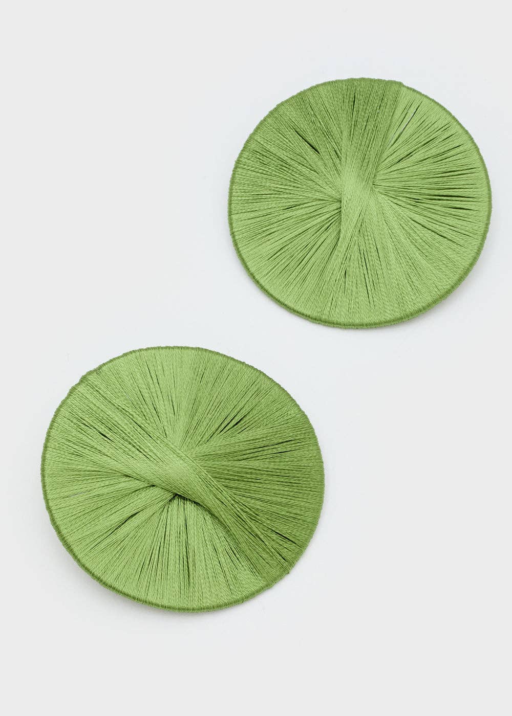 Pendientes redondos cubiertos de alambre con un diseño esencial y original, perfectos para realzar conjuntos casuales y minimalistas. COMPOSICIÓN: 90% RAYÓN 10% HIERRO