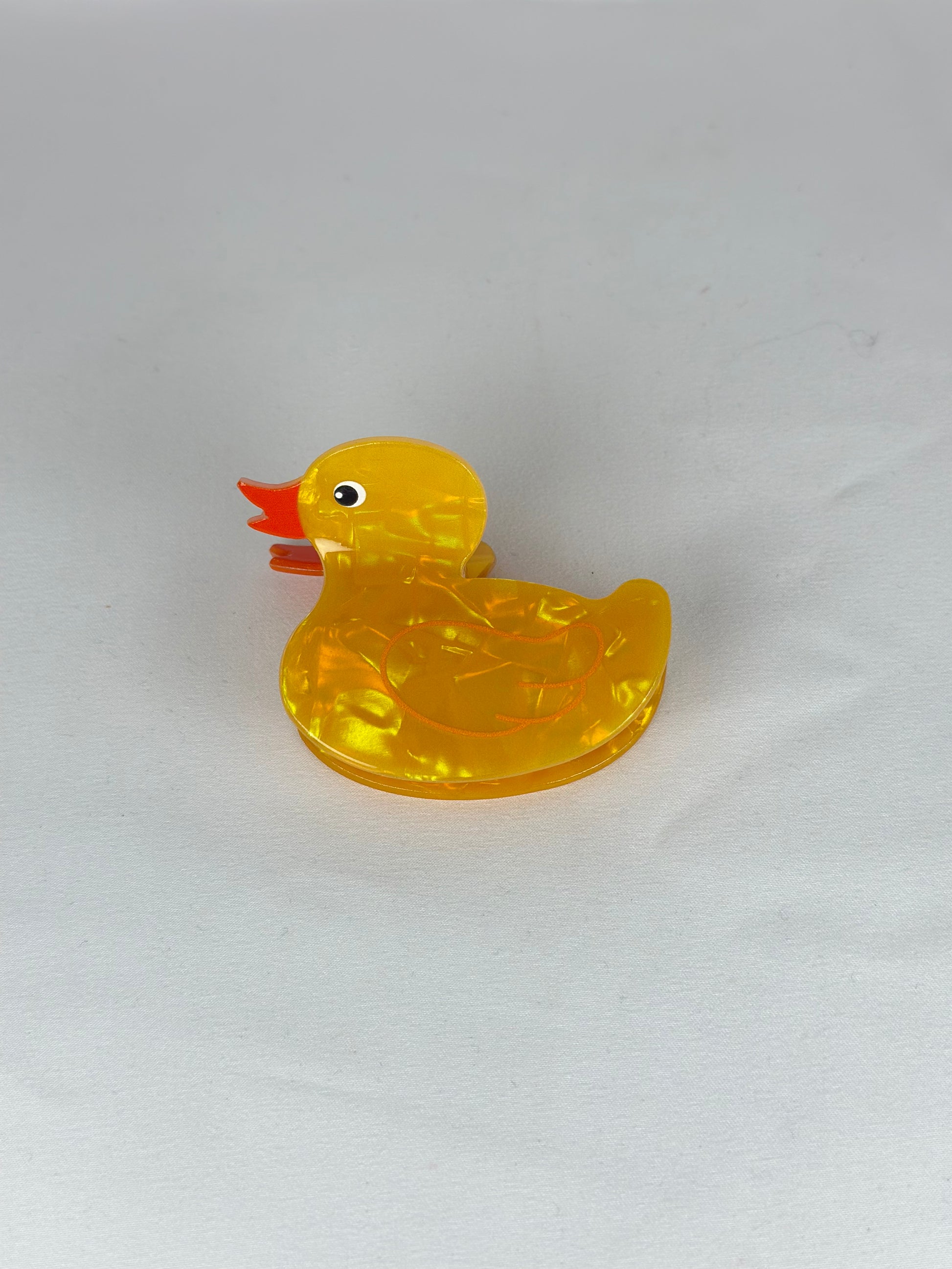 Esta pinza de pelo con forma de patito amarillo tiene el encanto de los objetos que mezclan humor y ternura. Su diseño, que recuerda al clásico pato de goma, aporta un toque nostálgico y divertido a cualquier peinado. Perfecta para sujetar el pelo con un punto de originalidad desenfadada, es un accesorio que no pasa desapercibido y que invita a jugar con el estilo desde lo cotidiano.