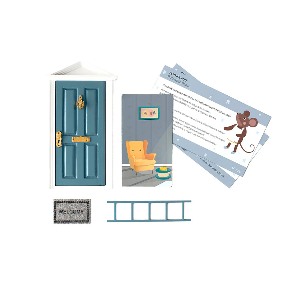 Puerta del Ratoncito Pérez en color azul oscuro, ideal para hacer aún más especial el momento en el que a los peques se les cae su primer diente. Un detalle lleno de magia que convierte esta etapa en un recuerdo inolvidable.