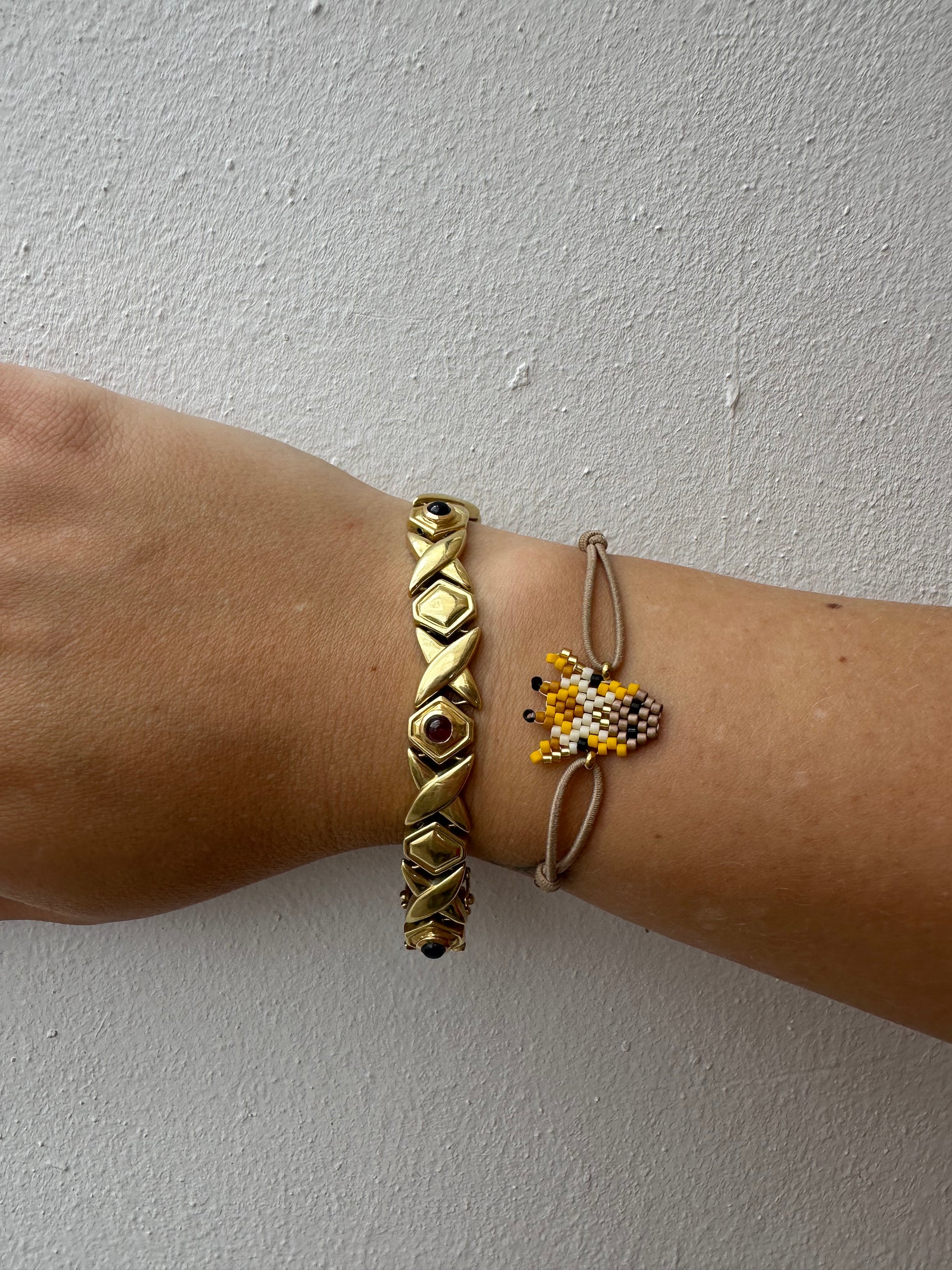 Pulsera elástica con cuentas Miyuki en tonos cálidos y detalle central de figura de jirafa. Su diseño combina estilo exótico y divertido, ideal para dar un toque original y diferente a cualquier look. Cómoda y fácil de llevar en cualquier ocasión.