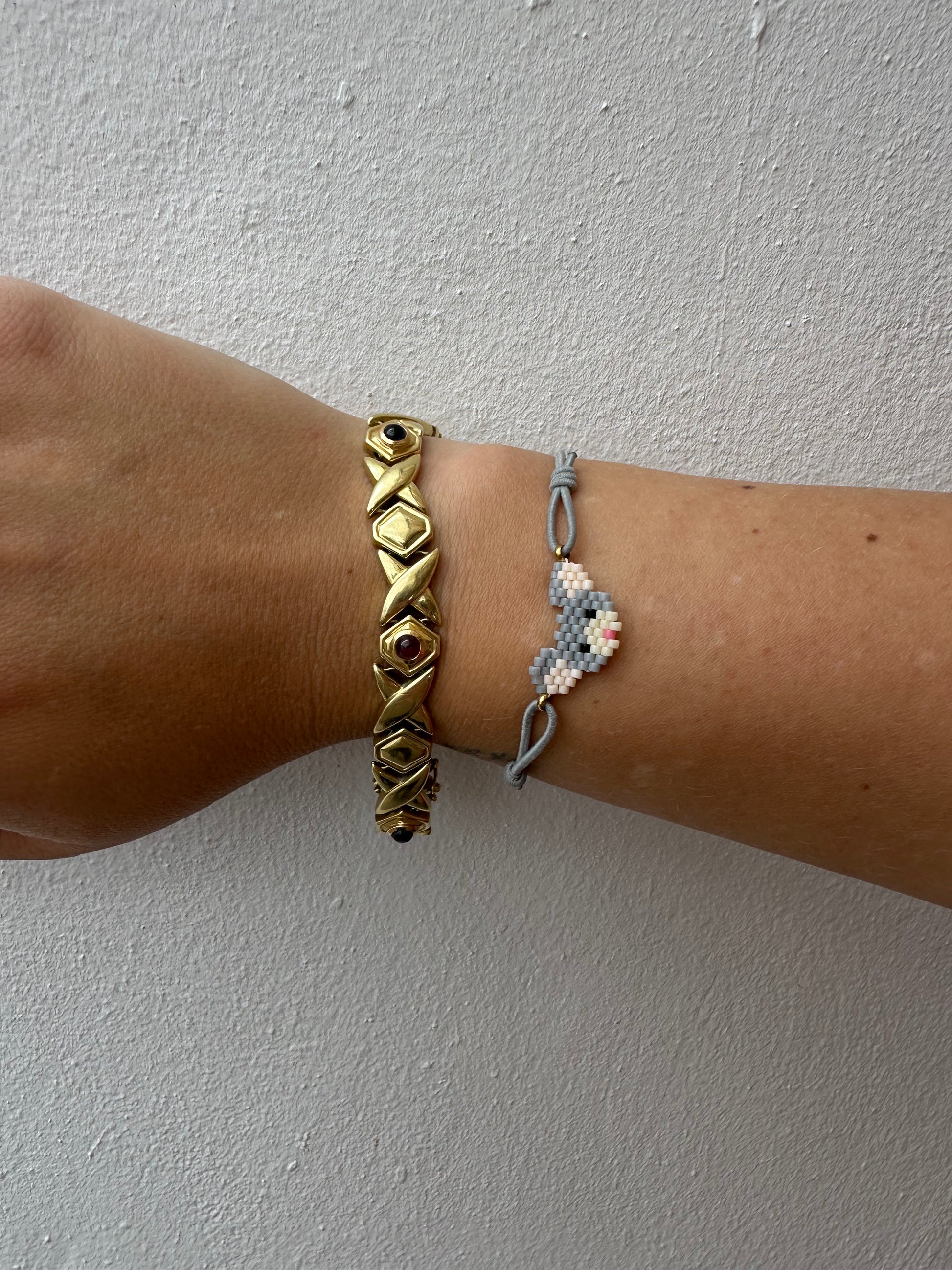 Esta pulsera elástica con cuentas Miyuki y diseño de ratón es una pieza artesanal encantadora que celebra lo diminuto con un gran carácter. Ideal para quienes aman los accesorios originales y con un toque de ternura inesperada.