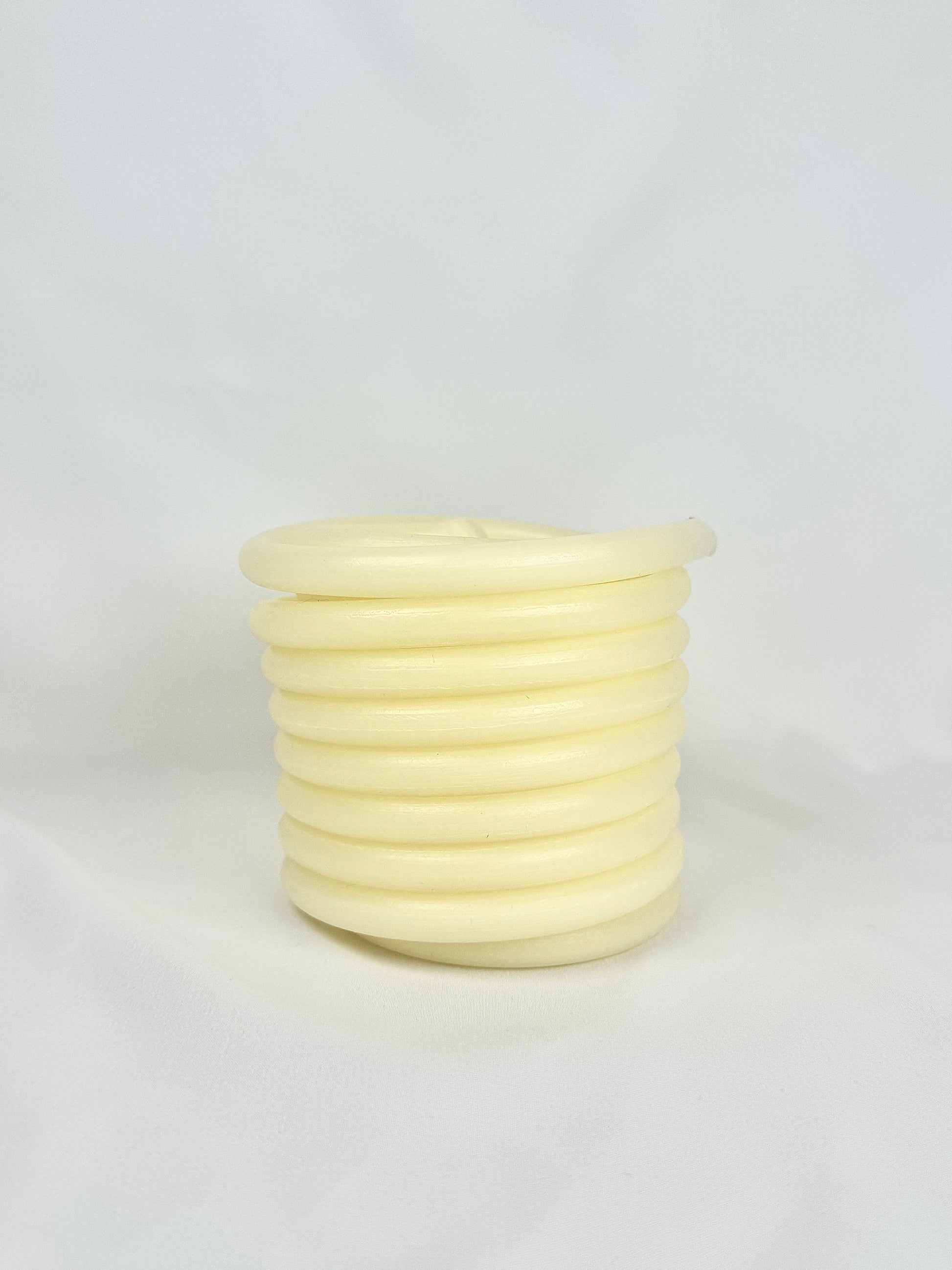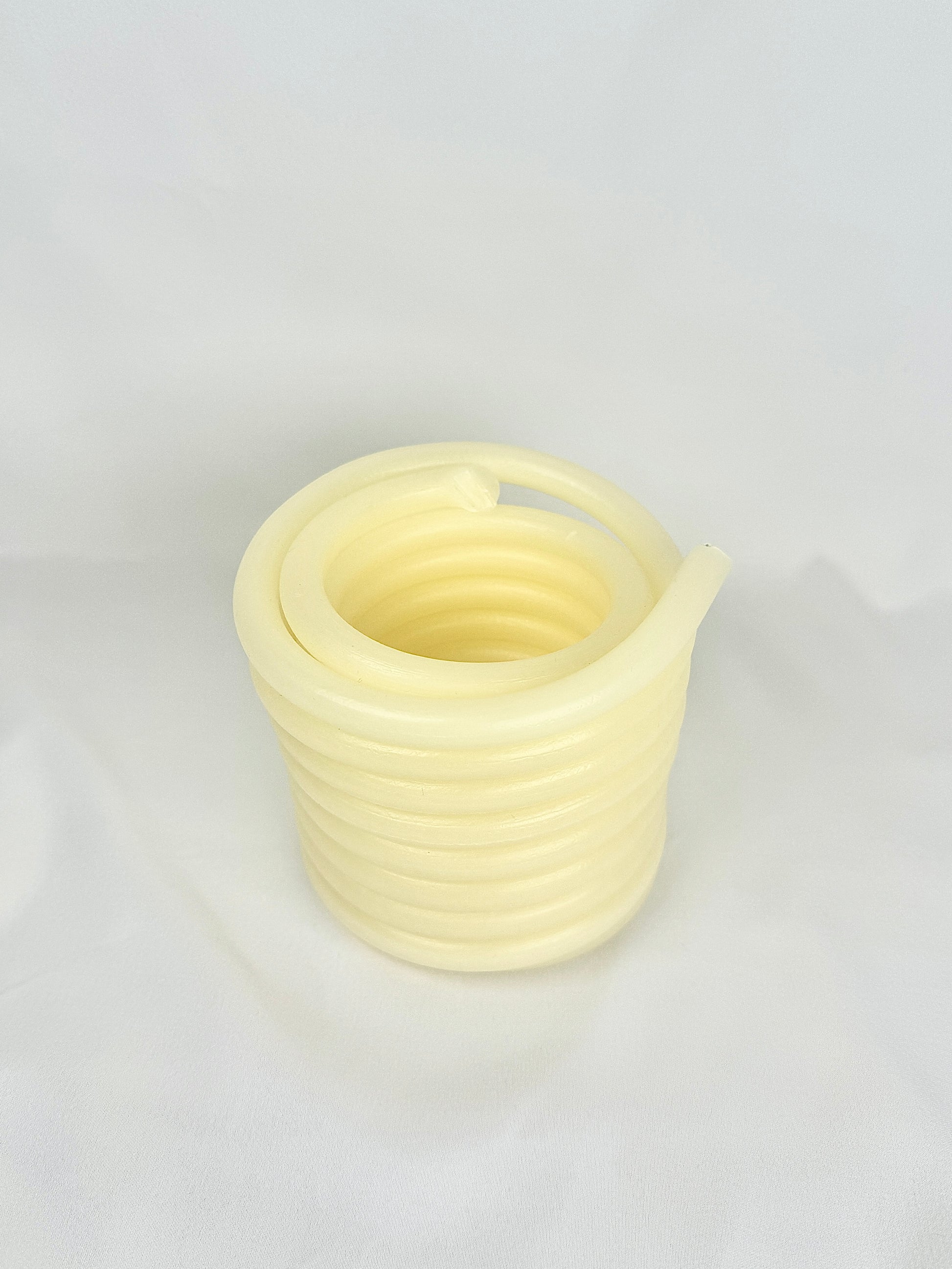 Esta vela en espiral rinde homenaje al encanto de las antiguas palmatorias, reinterpretando su silueta clásica con un diseño moderno y escultórico. Su forma en muelle crea un efecto visual dinámico, ideal para aportar carácter y calidez a cualquier ambiente.